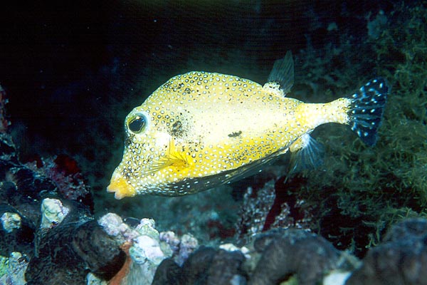 touring, along with a medium-sized spotted moray, another golden smooth trunkfish, and a