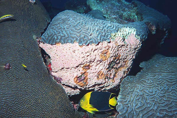 swimming along peacefully, until we spooked a small balloonfish. It swam up Ed's