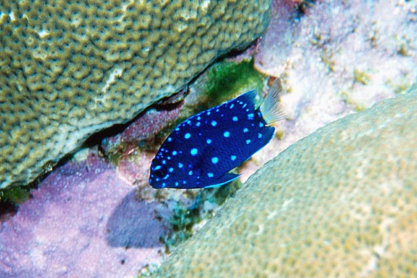 My favorite fish in the sea, the juvenile yellowtail damselfish.