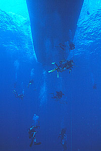 to get in the water occurs every dive! The hang lines get crowded at the end of the
