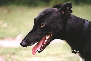 Sadie's PageSadie is a Greyhound we adopted from a woman we met in Austin's Pease Park while we were playing disc golf. The woman in question had adopted Sadie from another family less than a month before, and wanted to be rid of Sadie...It was a tough month for Sadie, but the years since then have been pretty good for her. Links to Greyhound pages: Sadie is shy around cameras, and she's black, both of which combine to make it really difficult to get a good picture of her. Sometimes you just have to make do. Here's Sadie. Click on an image to see a larger version.