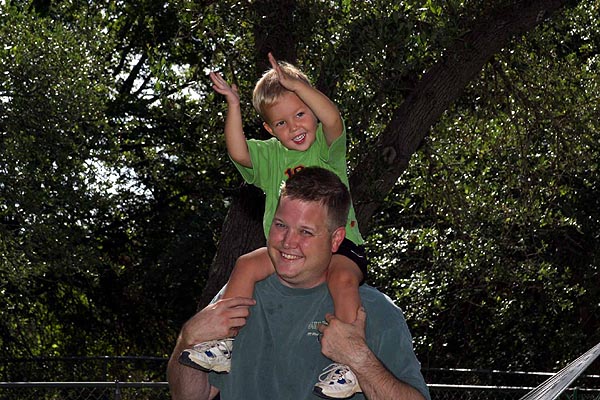 Dylan rides on Daddy's shoulders