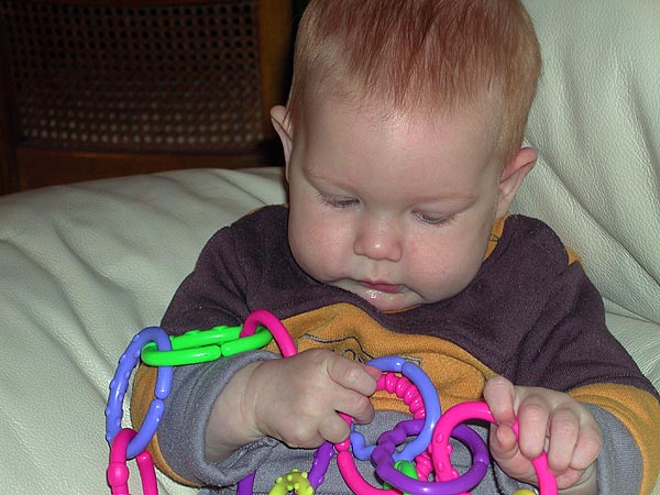 Kyle plays with one of his favorite teething toys. Christmas 2002