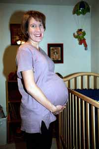 Anne shows off her size at 40 weeks (added 12/15/1999)