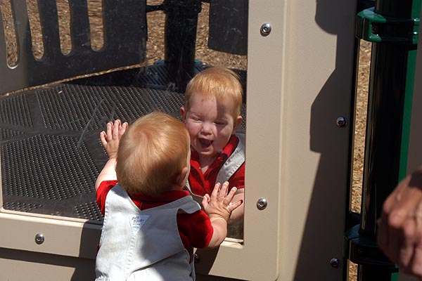 Kyle exmines his reflection in the mirror (April 2003)