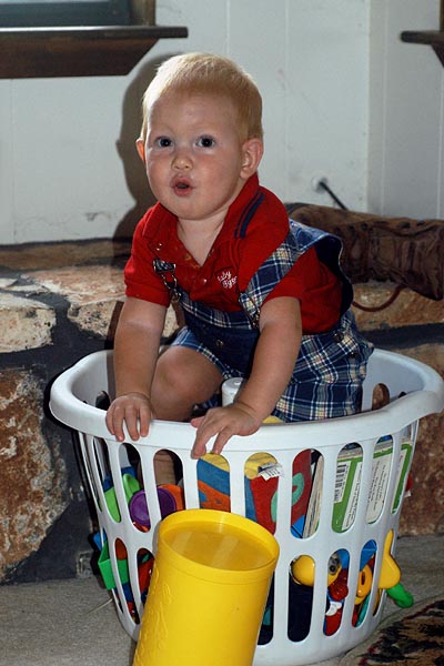 Kyle in the toy basket