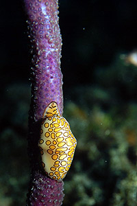 Here's what we saw. If you follow the cable to a depth of about 17 feet, you'll find the coral life beginning to crop up. There are several gorgonians, sea fans, and other waving corals within 15 feet of the cable. A large number of these growths sport flamingo tongues. Over 4 dives at this site, I never saw less than a half-dozen flamingo tongues in this general area. On each dive, I found at least one gorgonian which had multiple flamingo tongues. In other words, this dive site is macro heaven.