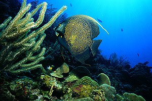 Other marine life: yellow stingrays (in the sand flats at about 50 feet), southern stingrays (same place), puffers, all varieties of angelfish, grouper, coneys, lots of sponges (including strawberry vase sponges, very cool), etc. etc.