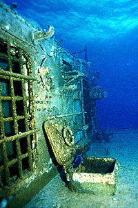The wreck is very well lit, and fun to swim around. There is not much growing on it yet, and only a few resident critters (most of them small). It's still an awesome sight, though, and it's littered with daylight swim-throughs for non-wreck divers. There is a great one where you can swim through the bridge from side to side.