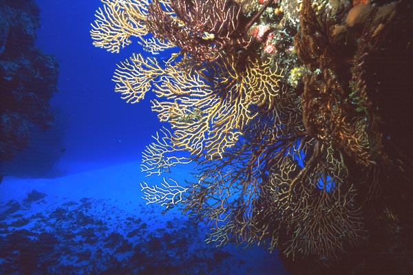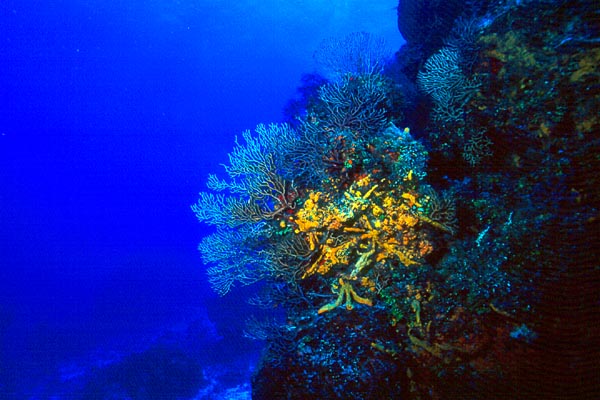 all sorts of current-fed creatures: sea fans, sea rods, and sea plumes, barrel & tube