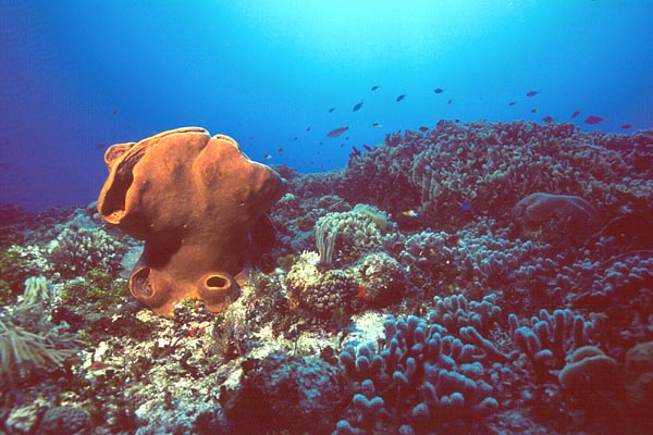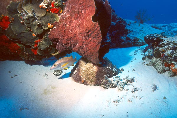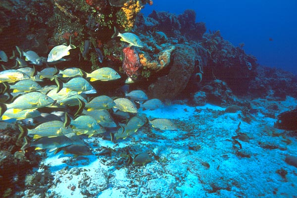 formations run out, "regular" reef takes over, with fish, sponges, and huge