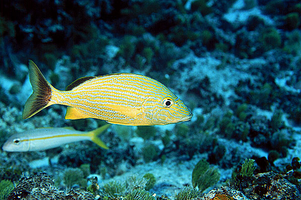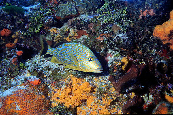 A bluestriped grunt against the reef.