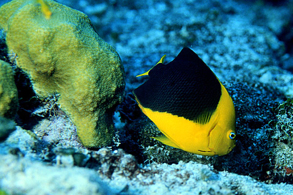 A juvenile yellowtail damselfish pauses long just enough for me to trigger the shutter.
