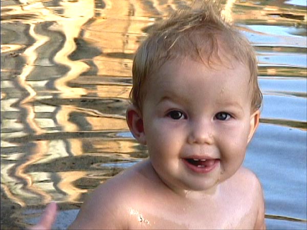 Dylan plays in the shallow water at Anthony's Key Resort, Roatan, Honduras (9/2000 - 9 mos)